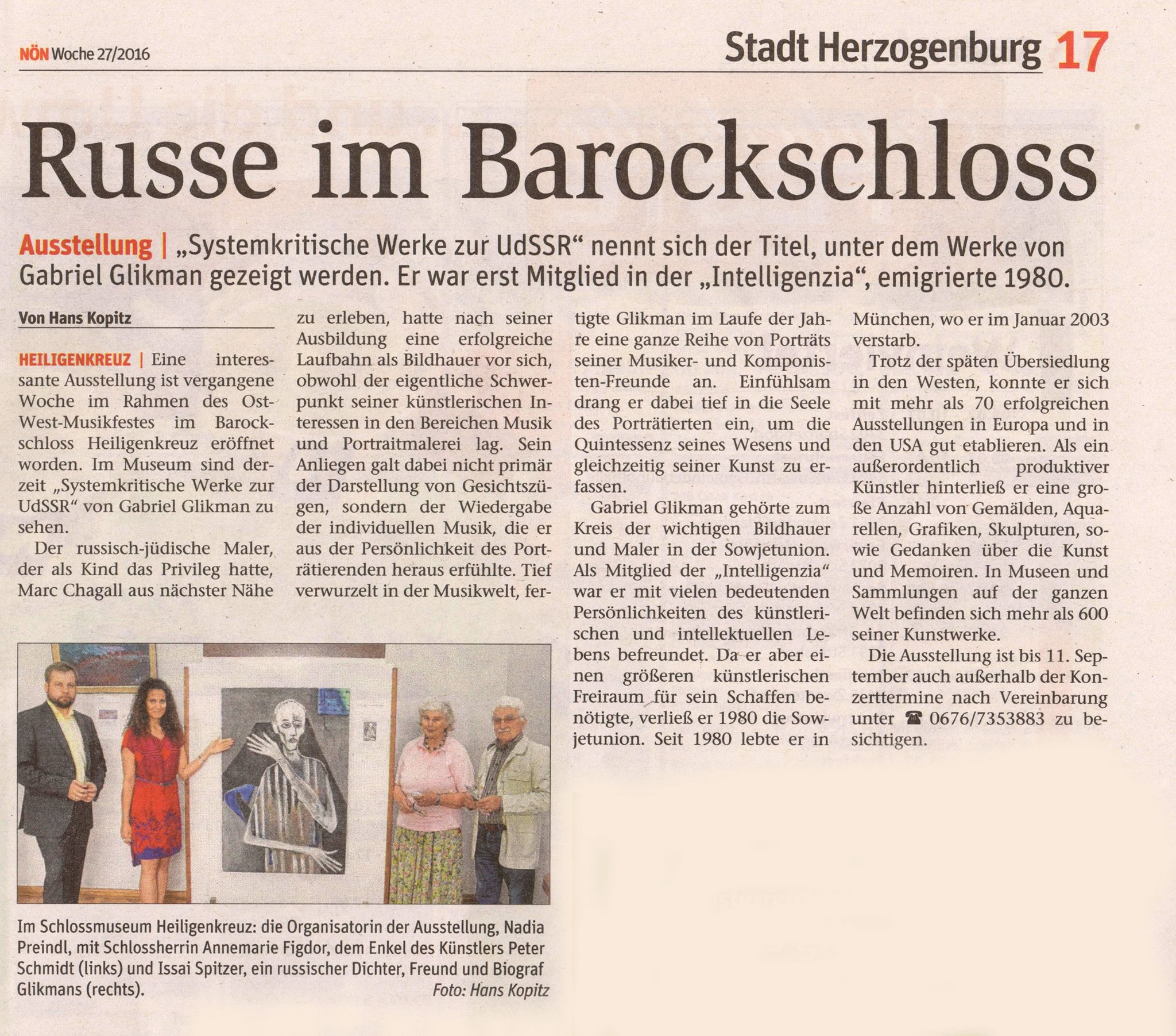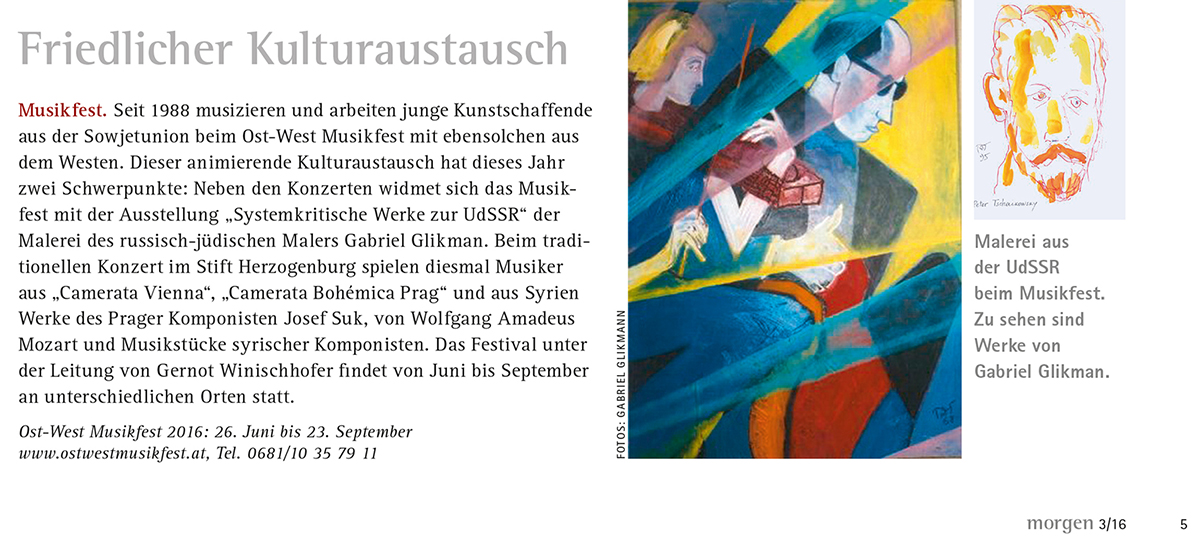 Первая австрийская выставка работ Гликмана представляет прежде всего грани творчества художника, связанные с критической оценкой командной системы советских времен. Такая выставка была бы немыслима при жизни художника в СССР.